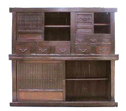 was done. We purchase old Japanese furniture (most pieces are about 80-100 years old) almost every month and they mainly come from the Chubu area of Japan (Aichi, Mie and Shiga Prefectures) where there are still a fair number of these items available. It is not easy for the average person to value or see the potential for old furniture. It requires a lot of experience because in most cases, the furniture is in poor condition and can be quite dirty, making it hard to imagine how it looked when it was brand new. |
