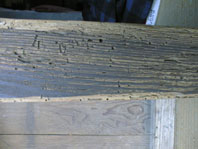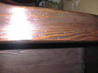 In this process, we firstly check for damage by borers and repair any holes made by them with wood putty. Mizuya Dansu or Kitchen cupboards are often severely damaged by borers around the base because they were usually placed on bare ground, which was common flooring for Japanese kitchens back in that period. If the damage is too much to repair, the furniture is broken into pieces and the timber and parts are then used in the restoration of other furniture. After all the holes are filled in, we spray "borer killer" on the whole thing. This has to be done carefully and precisely, otherwise any borers that survive will damage the furniture again.